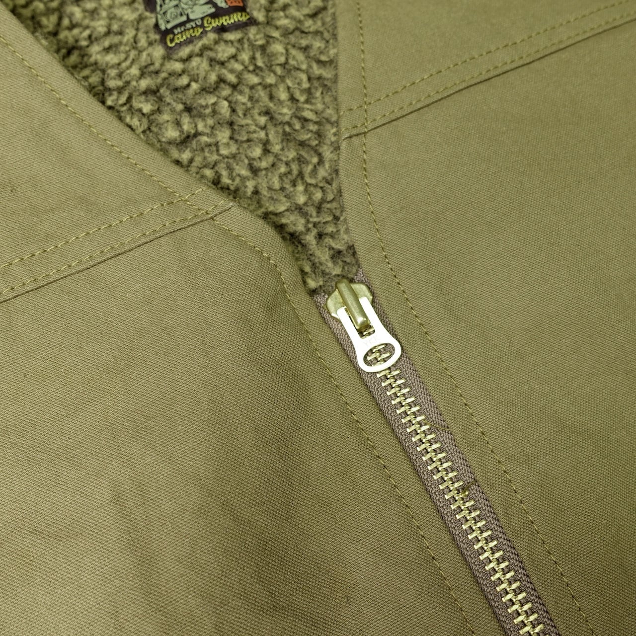 マテリアルには、フルレストアされた80年前の岩間シャトル織機より織り出された超高密度生地「ALBERTON 15oz ARMY DUCK」を採用。高密度に織られてますので水をも通しにくい仕上がり。ワンウォッシュ済み。
